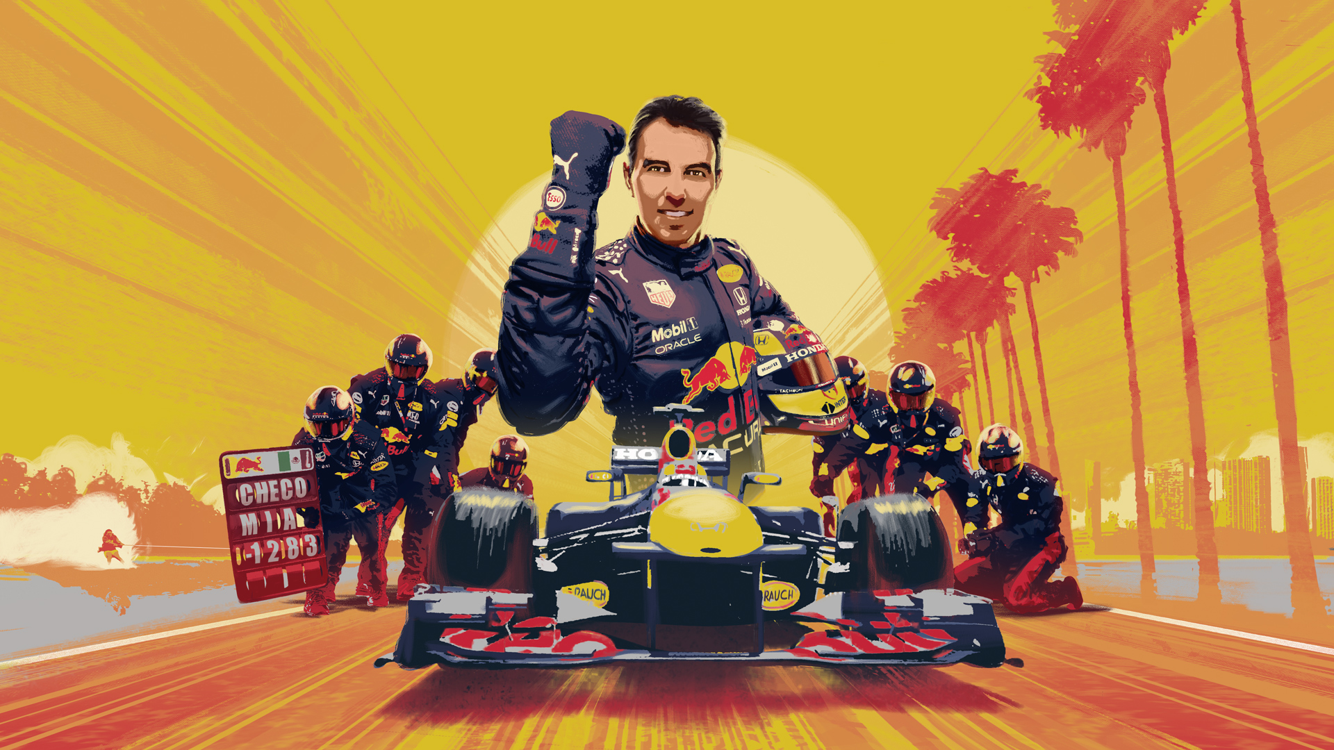 Red Bull granted me liberty to explore art direction in a way that felt authentic to the world of Formula 1. Inspired by vintage race posters, I proposed a post-modern aesthetic to blend the nostalgic charm of classic racing visuals with a modern, refined twist to reflect Red Bull’s brand identity and the feel of theMiami Grand Prix. This was achieved through the design of the films opening title animation, UI graphics, and title cards.