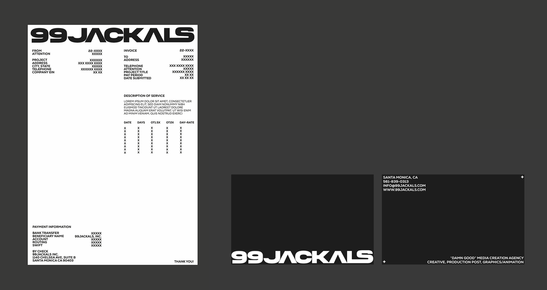 Founded with the goal of creating a "Damn Good Media Agency", the 99JACKALS ethos was inspired by the symbolic the jackal—optimistic omnivores who thrive in their environment. We handled development, identity, merchandise, and website design. The brand was developed around this concept of jackals representing the remaining nimble omnivores of industry x culture. This concept fueled the creation of a dynamic, adaptable identity for a full-production company.