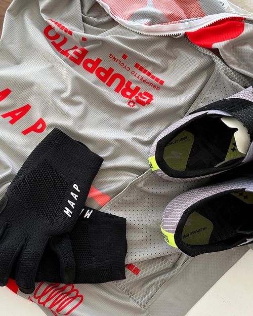 Partnerships with Oakley, Kask, Fizik, and MAAP positioned GRUPPETTO inside the global cycling ecosystem. The MAAP collaboration pushed the identity further, allowing high-fashion aesthetics to be tested against the strict functionality of technical gear.